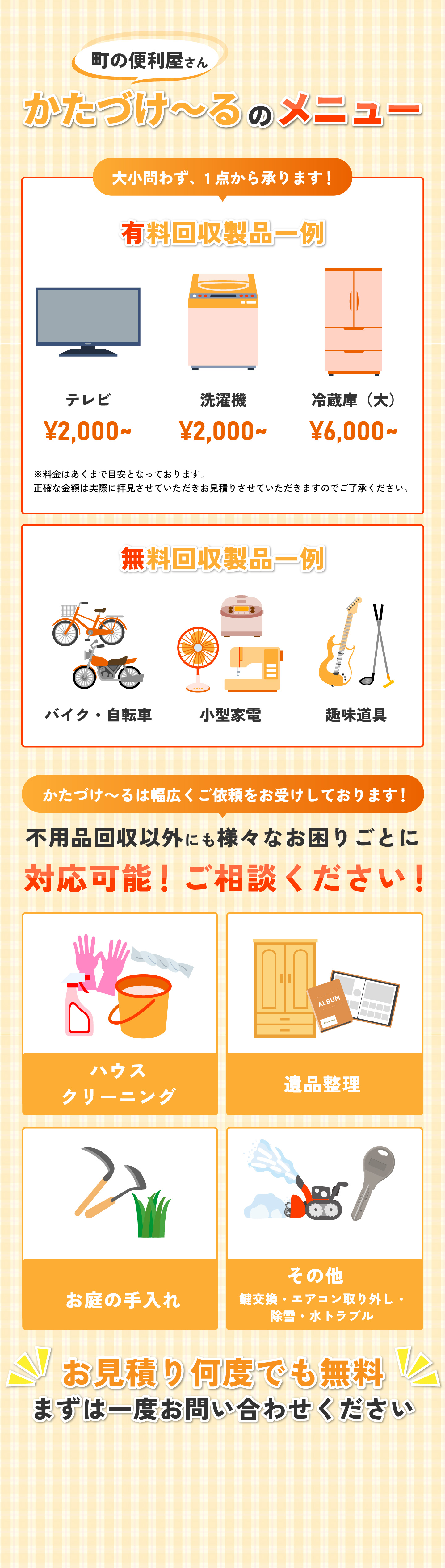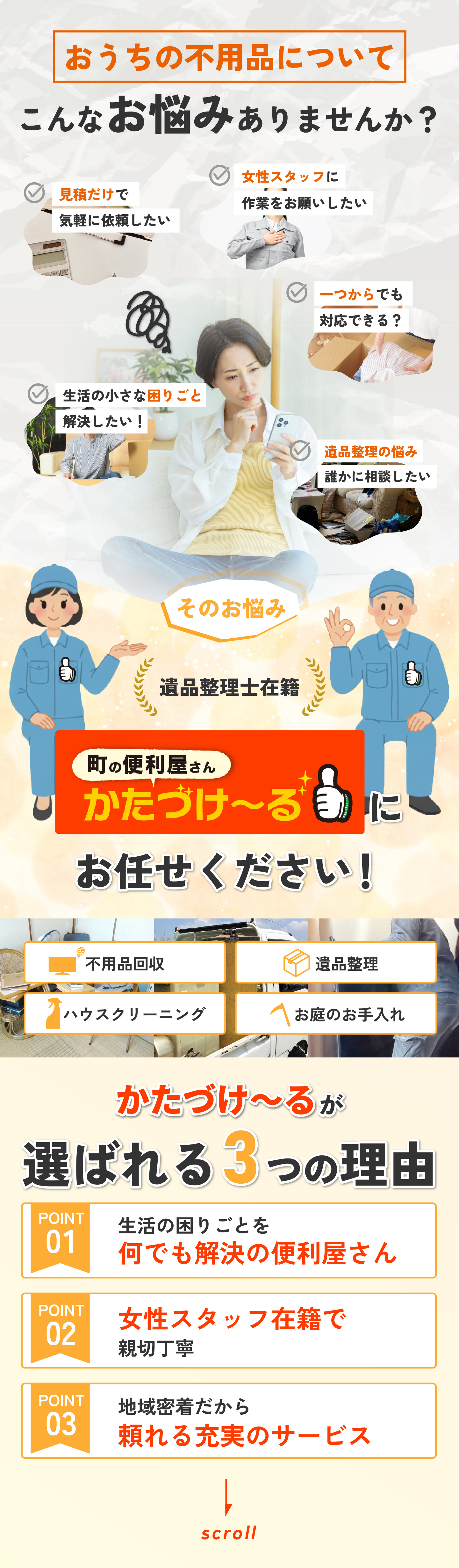 | 事業内容 | 不用品回収,遺品整理,その他小さな修繕や軽作業など日常生活サポート |