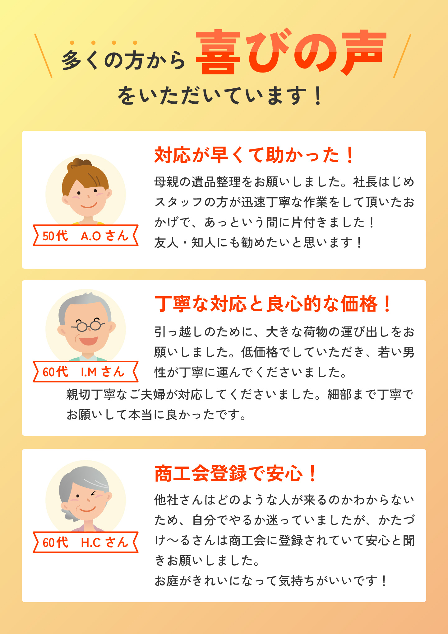 | 事業内容 | 不用品回収,遺品整理,その他小さな修繕や軽作業など日常生活サポート |